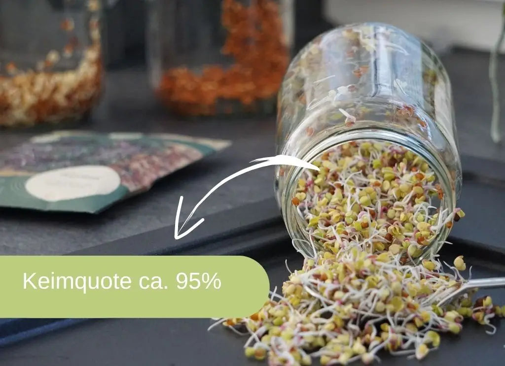 Um optimal in die Sprossen Anzucht einzusteigen, wird hochwertiges Keimsaatgut benötigt. Deshalb haben wir bei unseren Mungobohnen Samen sehr viel Wert daraufgelegt, dass die Samen frei von Schadstoffen, Chemikalien und Pestiziden sind. Denn wir verwenden ausschließlich Bio zertifizierte Mungbohnen Samen, die gänzlich unbehandelt sind. Zusätzlich wird die Keimsaat jährlich auf Verunreinigungen kontrolliert und zugleich wird die Keimeigenschaft ebenfalls geprüft. So kommt nur frisches Saatgut in unsere Tüten.