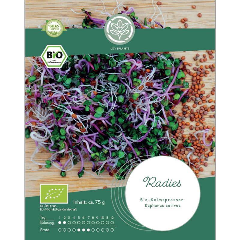 Inhalt: (DE-ÖKO-006)Saatgut ca.75g Bio Radieschen Sprossen Samen