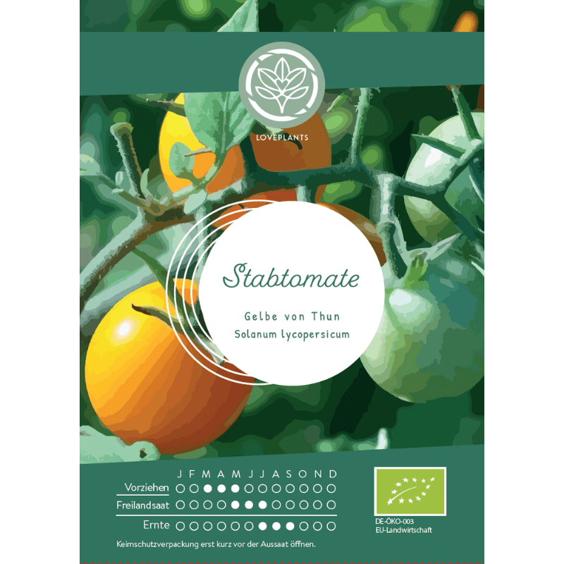Die Stabtomate Gelbe von Thun ist eine sehr frühreifende, robuste und fruchtig schmeckende Tomaten Sorte mit einer erfrischenden Säure. Die Gelbe von Thun wird gerne für Salate oder für den direkten Verzehr verwendet. Die bis zu 50 g schweren Früchte erreichen einen Durchmesser von ca. 4 cm. Die Tomaten sind eine sehr gesunde und leckere Alternative zu Supermarkt Tomaten. Neben dem einzigartigen Geschmack bietet sie außerdem viele wichtige Vitamine, Mineralstoffe und Spurenelemente. Der wertvollste Inhaltsstoff ist wohl das Lycopin. Der Pflanzenstoff ist dafür verantwortlich, dass die reifen Tomaten Ihre Färbung entwickeln. Außerdem stärkt der Farbstoff unsere Immunabwehr und wirkt krebsvorbeugend. Um dir nur die beste Qualität zu bieten, haben alle unsere Samen zu 100% Bio Qualität. Mit dem Kauf unserer Bio Stabtomate Gelbe von Thun Samen tust du aber nicht nur dir selbst etwas Gutes, sondern auch unserer Umwelt. Alle unsere Bio Samen sind schonend und nachhaltig gezüchtet und vermehrt worden. Keine Pestizide, keine Genmanipulation, einfach Natur pur. Jetzt Tomate Gelbe von Thun Samen kaufen.
