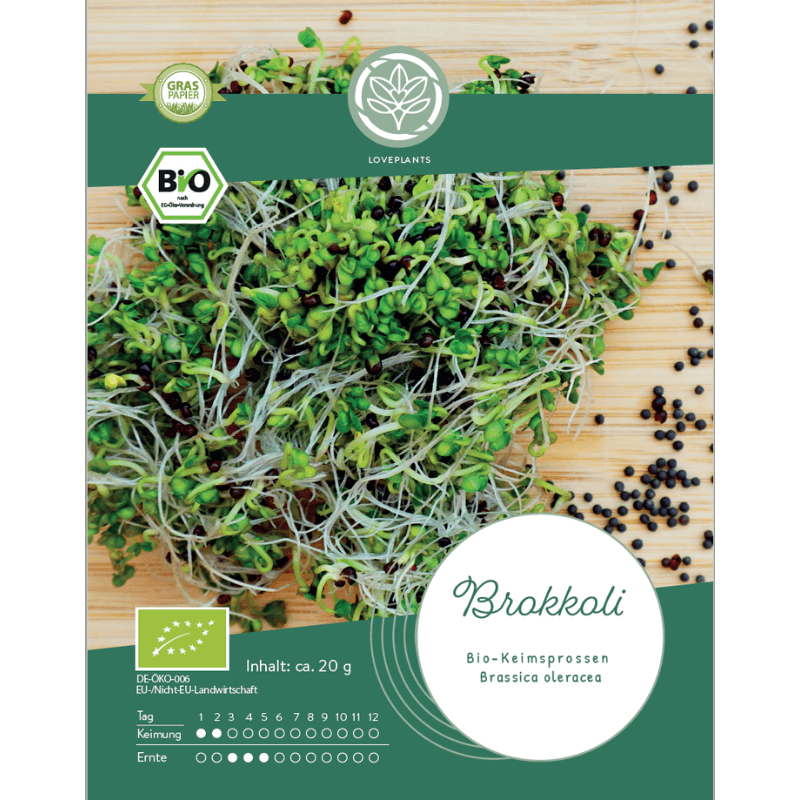 Um nährstoffreiche und gesunde Brokkoli Sprossen zu züchten, ist eine hochwertige Keimsaat die wichtigste Grundlage. Alle Brokkolisprossen Samen bei Loveplants sind deshalb gänzlich unbehandelt und Bio-zertifiziert. Sie sind frei von Schadstoffen, Chemikalien und Pestizidrückständen, da die Sprossen Samen aus kontrolliert biologischem Anbau kommen. Unsere Bio Brokkoli Sprossen Samen unterliegen außerdem regelmäßigen Kontrollen, um die beste Qualität der Samen garantieren zu können. Dazu werden unsere Sprossen Samen auf Verunreinigungen und Keime geprüft.