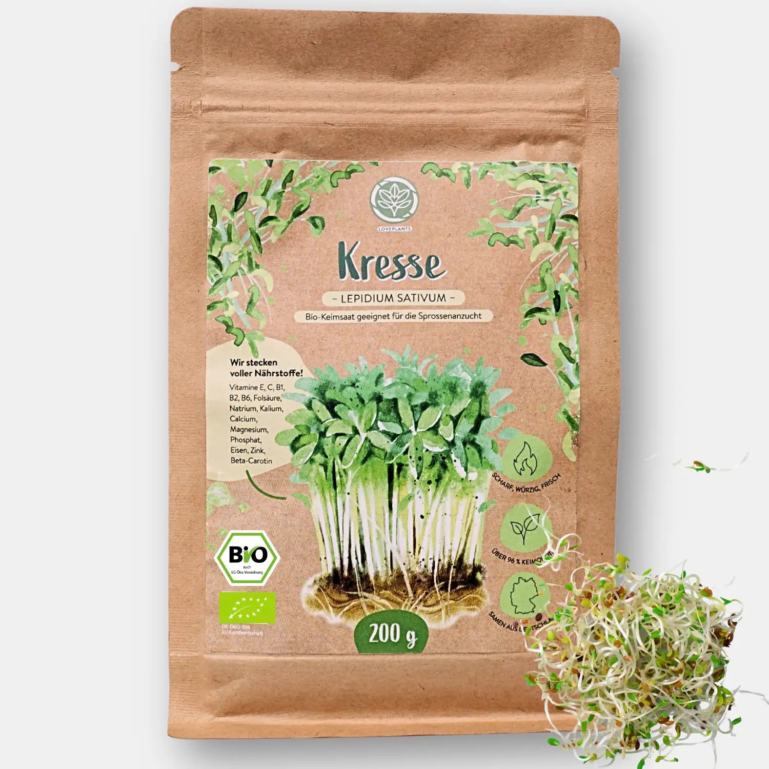 Inhalt: (DE-ÖKO-006)Saatgut ca.75g Bio Kresse Sprossen Samen